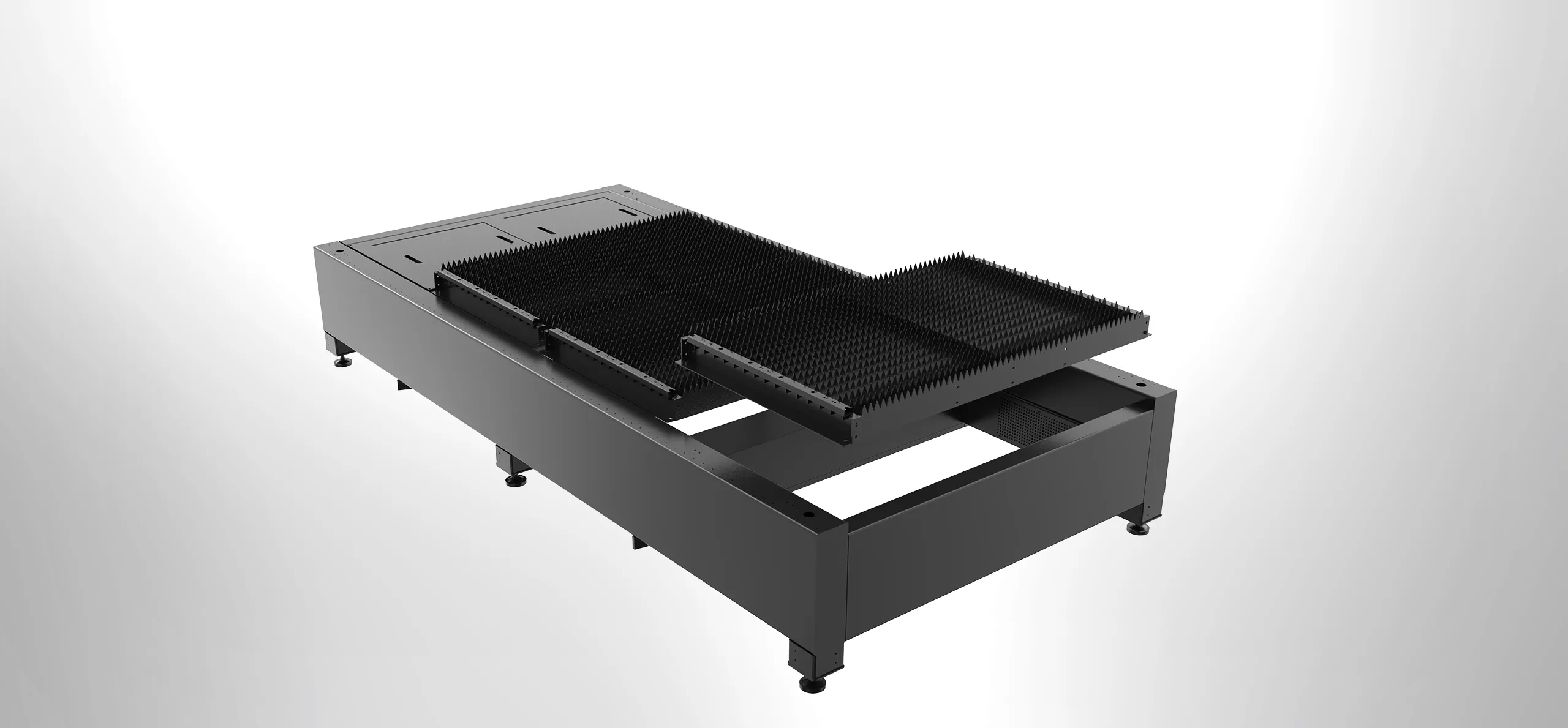 Rangka katil menggunakan bahan tahan api mineral untuk meminimumkan ubah bentuk haba semasa memotong dan memanjangkan jangka hayat peralatan.
